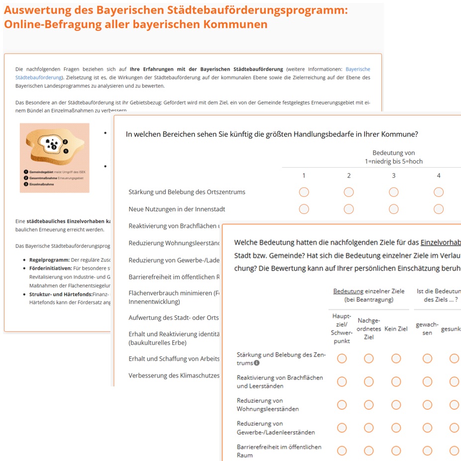 Für den Zeitraum von 2010 bis 2024 werden von der empirica AG Maßnahmen der bayerischen Städtebauförderung mit einem erhöhten Fördersatz aus dem „Struktur- und Härtefonds“ oder einer der bayerischen Förderinitiativen ausgewertet. Ziel ist es, die Wirkungen des Landesprogramms zu analysieren und zu bewerten. Die Auswertung umfasst neben Datenanalysen und Fallstudien auch eine Online-Befragung für alle Städte und Gemeinden im Freistaat Bayern. Die Online-Befragung der bayerischen Kommunen findet im Januar und Februar 2026 statt. Sie dient dazu vertiefte und umfassende Erkenntnisse über die Städtebauförderung auf kommunaler Ebene zu gewinnen. Die Ergebnisse dienen auch der Erfolgskontrolle.