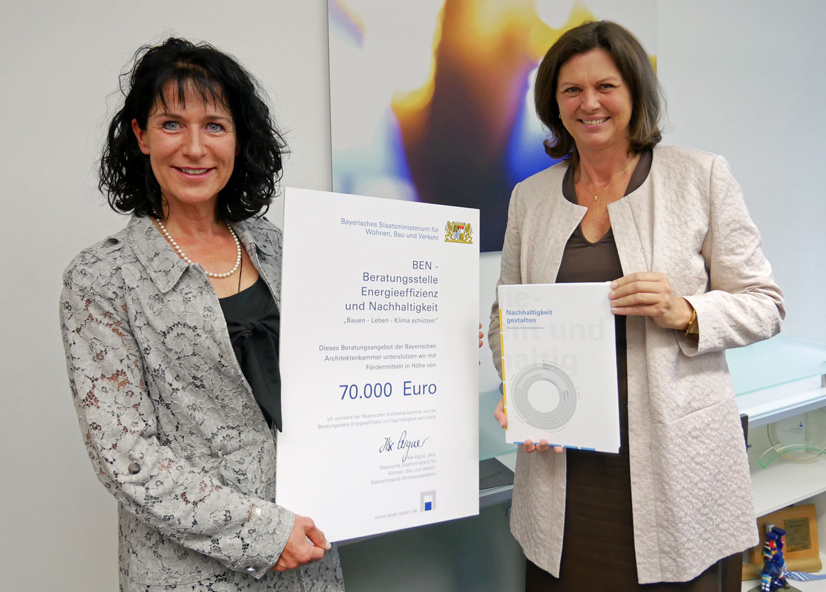 Nach zwei Jahren Laufzeit zieht Bayerns Bauministerin Ilse Aigner Bilanz: "Die Beratung ist kostenfrei und wird von Architekten wie Ingenieuren, von staatlichen wie privaten Bauherren oder auch von Wohnungsbaugesellschaften in großem Umfang genutzt. Wir sind mit der Zusammenarbeit der Bayerischen Architektenkammer hoch zufrieden. Damit das Erfolgsrezept auch weiter laufen kann, fördern wir die Beratung weiterhin mit 70.000 Euro."