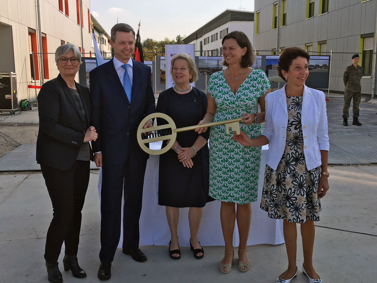 Neubiberg, 17. September 2018 (stmb). Der Campus der Universität der Bundeswehr München in Neubiberg wächst weiter: Bayerns Bauministerin Ilse Aigner hat heute gemeinsam mit der Präsidentin der Universität der Bundeswehr, Prof. Merith Niehuss, und dem Parlamentarischen Staatssekretär im Bundesministerium der Verteidigung, Thomas Silberhorn, an der Einweihung einer neuen Unterkunft für 180 Studierende teilgenommen. Der Bund hat etwa 16 Millionen Euro für den Bau des Gebäudes bereitgestellt.
