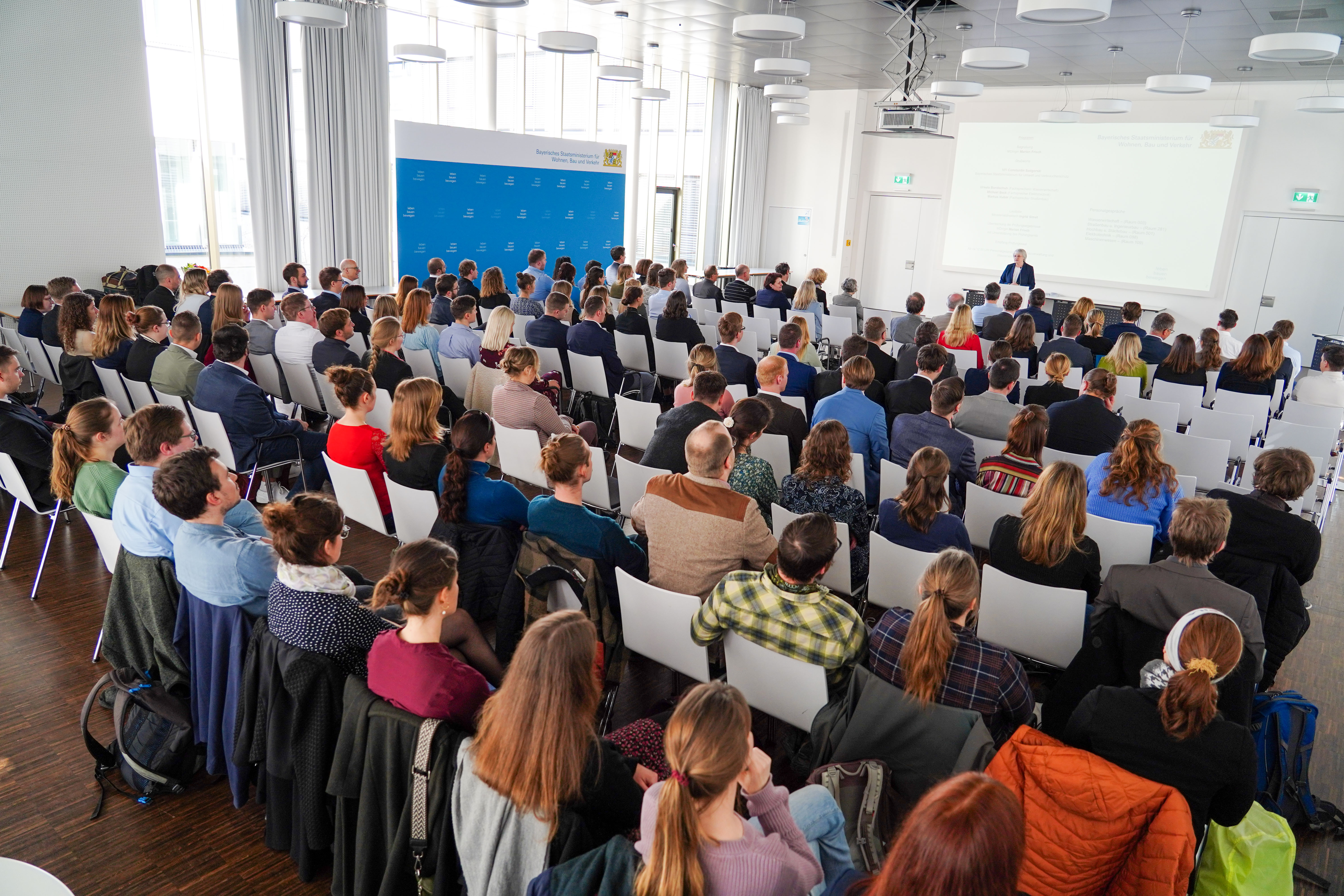 Begrüßt wurden die frisch angehenden technischen Oberinspektorinnen und Oberinspektoren von der Leiterin der Abteilung Zentrale Angelegenheiten, Ministerialdirigentin Marion Frisch. Anschließend betone Ministerialrat Constantin Sadgorski vom Bayerischen Staatsministerium für Umwelt und Verbraucherschutz bei seinem Grußwort, wie wichtig die Vernetzung zwischen den Fachbereichen ist und das die in der Ausbildung geschlossenen Kontakte bestenfalls ein Berufsleben lang halten.