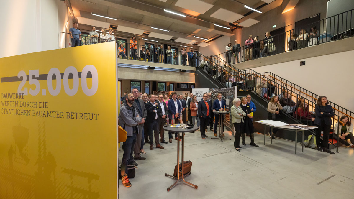 Regierungsvizepräsident Thomas Engel hob in seiner Eröffnungsrede die Bedeutung, die der bayerische Hochbau für die Baubranche hat, und die Chancen, die er für kreative Fachkräfte bietet, hervor: „Der Staatliche Hochbau in Bayern zählt zu den größten Auftraggebern der bayerischen Bauwirtschaft. Mit einem vielfältigen Aufgabenfeld, das von Hochschulen und Museen über Kliniken und Polizeistationen bis hin zu Kulturdenkmälern reicht, bietet er Architektinnen und Ingenieuren, Bautechnikerinnen und Verwaltungsspezialisten ein breites Spektrum an Gestaltungsmöglichkeiten. Neben Neubauten steht der Erhalt, Umbau und die energetische Modernisierung im Fokus. Dafür suchen wir kreative Köpfe, die Verantwortung übernehmen und mitgestalten wollen.“