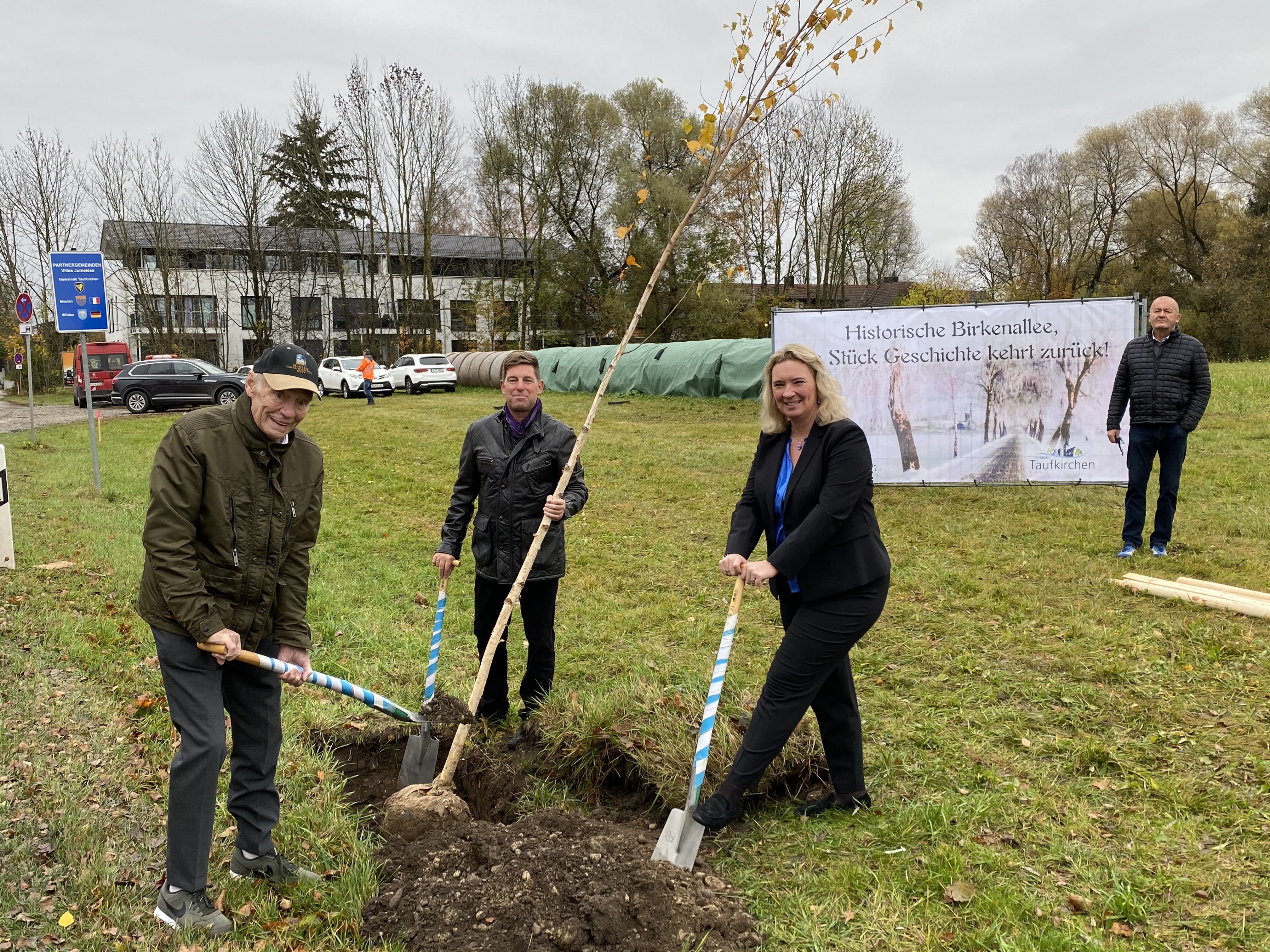 Die Birkenallee an der Tölzer Straße zwischen Potzham und Taufkirchen wird vervollständigt: Bayerns Verkehrsministerin Kerstin Schreyer hat heute gemeinsam mit Taufkirchens Bürgermeister Ullrich Sander den ersten Baum auf der östlichen Straßenseite gepflanzt. „Ich freue mich sehr, dass wir die Allee mit der Pflanzung von zehn Birken wiederherstellen können“, so Schreyer. „Das wertet die Straße und die gesamte Umgebung enorm auf.“