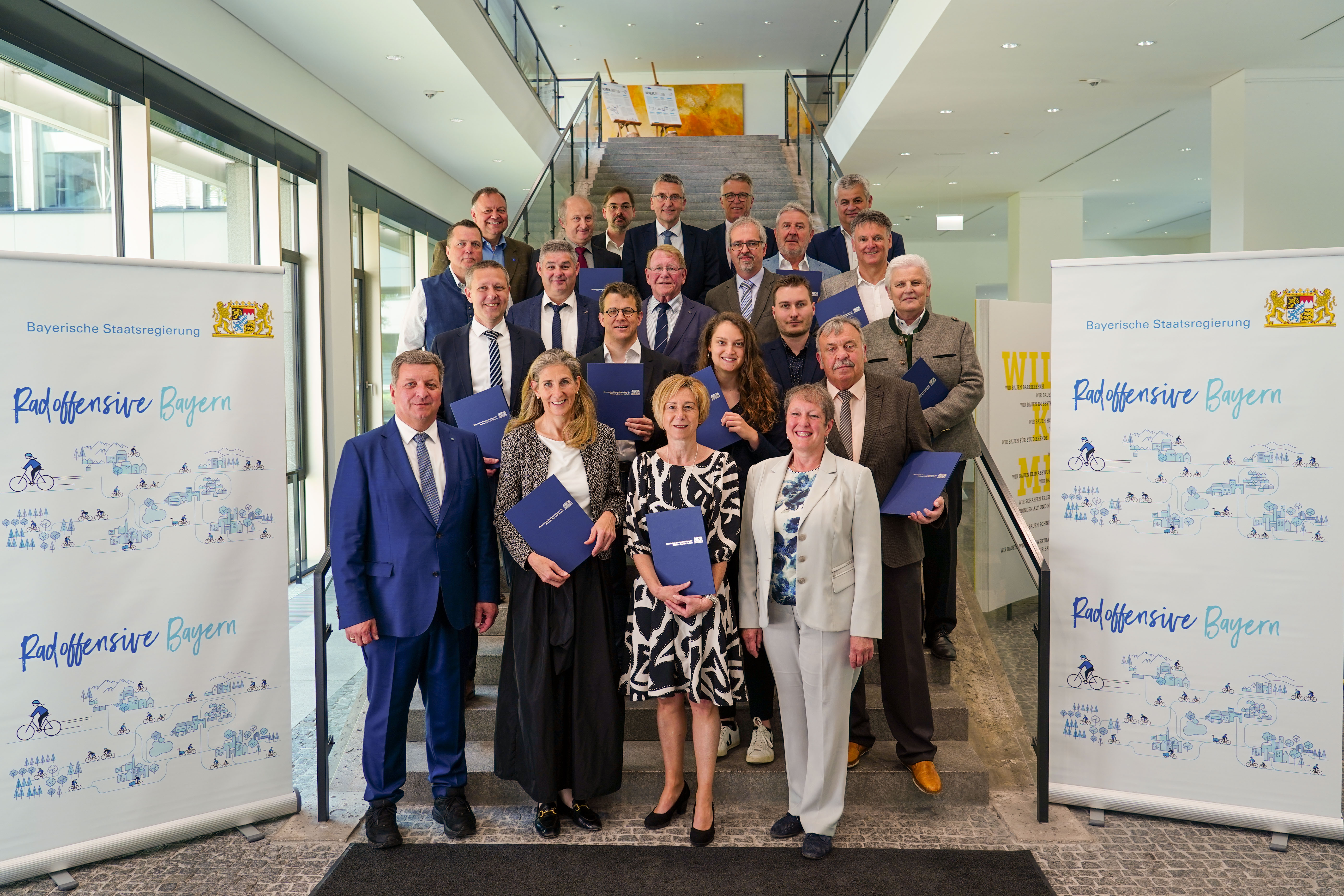 Die Förderung des Radverkehrs ist ein wichtiger Bestandteil der bayerischen Verkehrspolitik. Die Staatsregierung hat deshalb die Radoffensive Klimaland Bayern ins Leben gerufen. Seit 2022 werden Kommunen beim Bau von Radwegen mit Innovationscharakter, auf interkommunalen Strecken, im Wald oder entlang von Bahnlinien unterstützt. Heute hat Bayerns Verkehrsminister Christian Bernreiter 17 weitere Projekte aus ganz Bayern in das Programm aufgenommen und Vertreterinnen und Vertretern der beteiligten Kommunen symbolische Urkunden überreicht: „Die Radoffensive ist hervorragend angelaufen, die ersten Projekte sind bereits in Bau“, so Bernreiter. „Ich freue mich sehr, dass 2023 wieder zehn Millionen Euro im Haushalt zur Verfügung stehen und wir damit weitere Kommunen in das Programm aufnehmen können. Wir wollen die Radoffensive bis 2030 fortsetzen und so hoffentlich noch viele Gemeinden beim Bau von Radwegen unterstützen.“