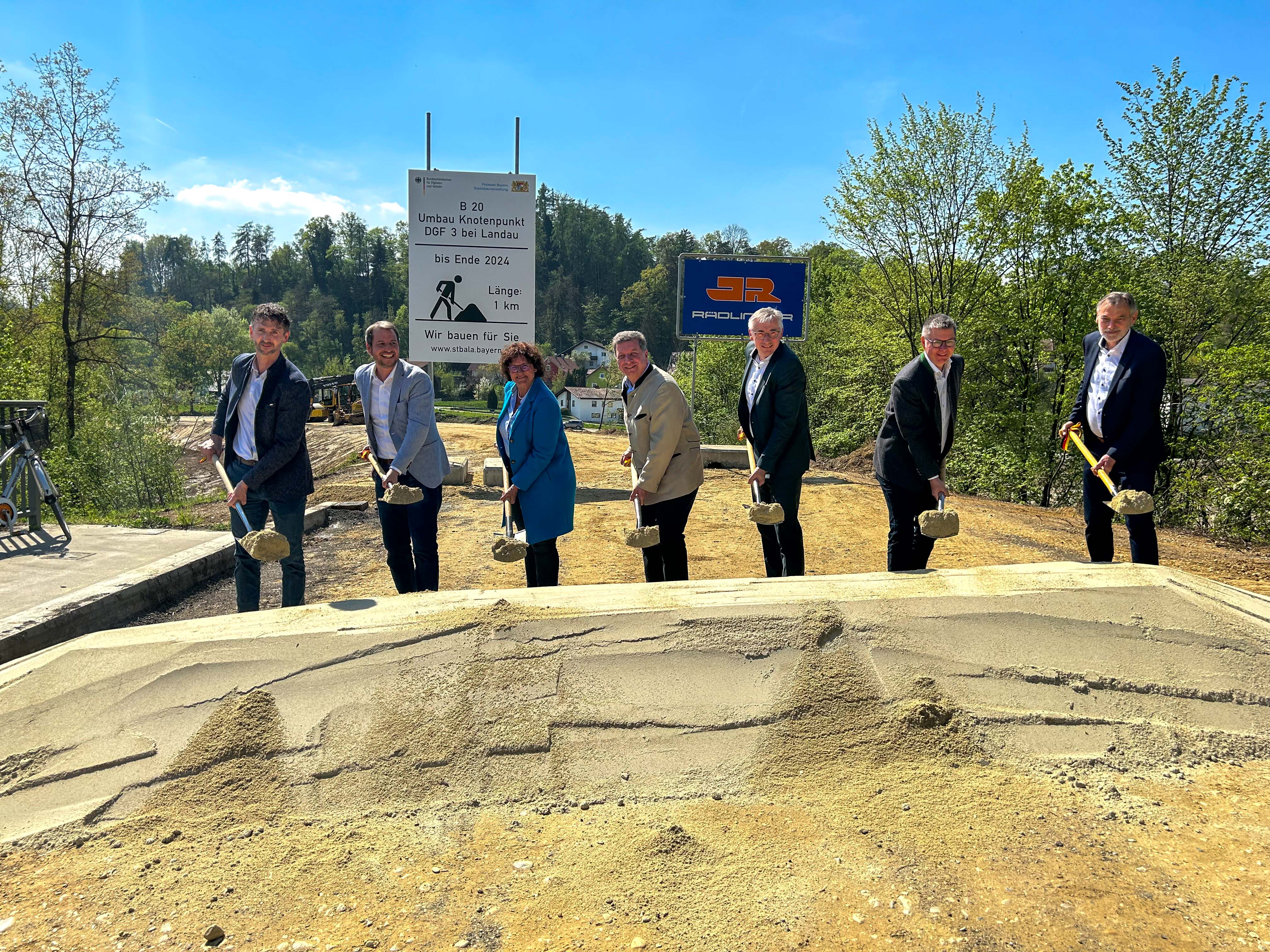 Die B 20 hat eine herausgehobene überregionale Verkehrsbedeutung: Sie ist in Niederbayern im Bereich des Landkreises Dingolfing-Landau die wichtigste Achse für den Nord-Süd-Verkehr und Zubringer zur A 92. Rund 15.000 Fahrzeuge sind täglich im Bereich von Landau unterwegs. Um eine potenzielle Gefahrenstelle zu entschärfen, baut das Staatliche Baumt Landshut gemeinsam mit dem Landkreis Dingolfing-Landau die Kreuzung B 20/Kreisstraße DGF 3 so um, dass Fahrzeuge die Bundesstraße künftig nicht mehr kreuzen müssen. „Das ist ein erfreulicher Tag für die Region. Die Maßnahme ist ein weiterer wichtiger Baustein zur Verbesserung der Verkehrssicherheit und Leistungsfähigkeit der B 20“, so Bayerns Verkehrsminister Christian Bernreiter am heutigen Freitag beim Spatenstich. Die Baumaßnahme soll im Dezember 2024 abgeschlossen sein.