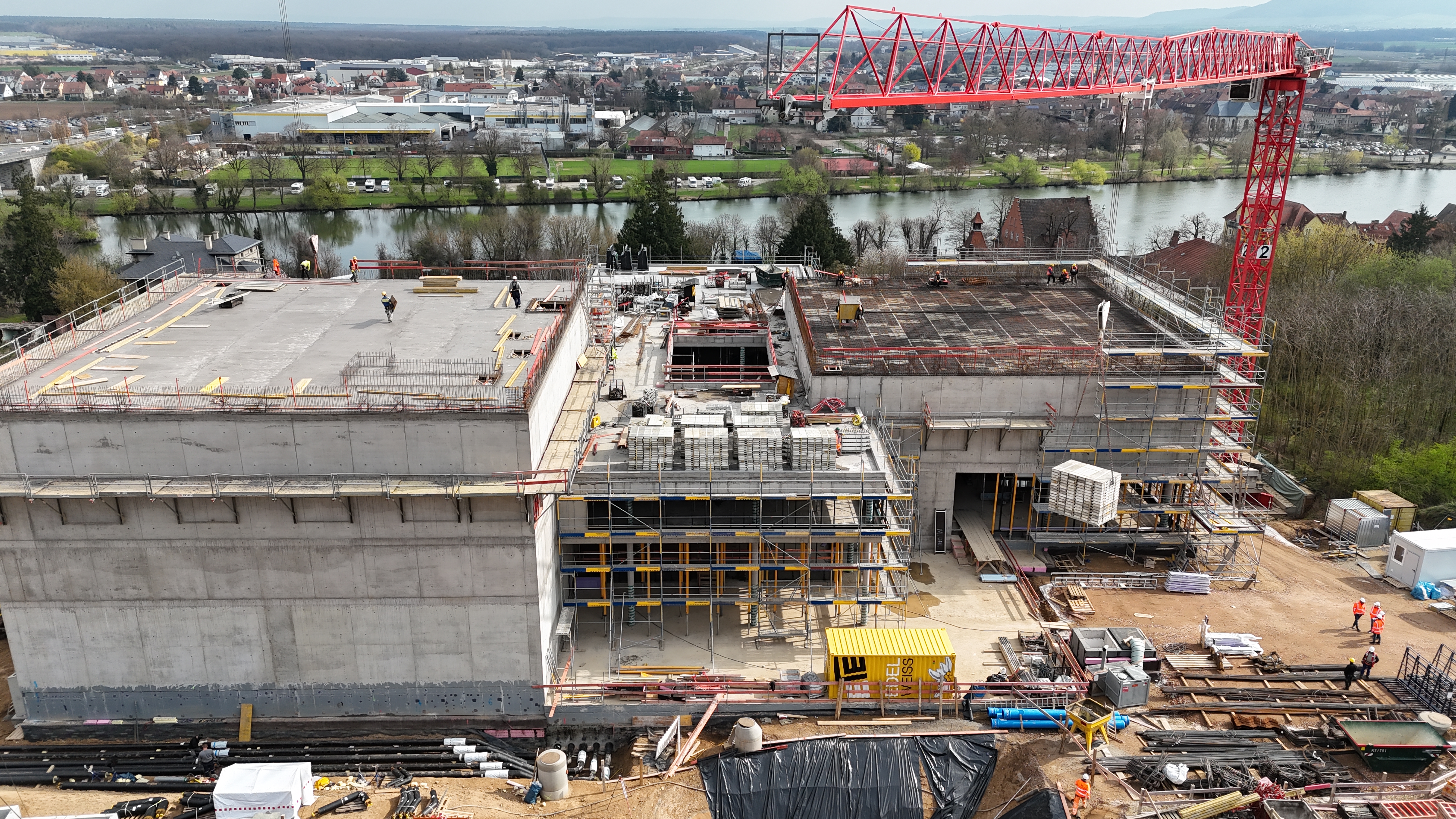 Bild 1: Die Arbeiten am Neubau des Staatsarchivs Kitzingen schreiten voran.
