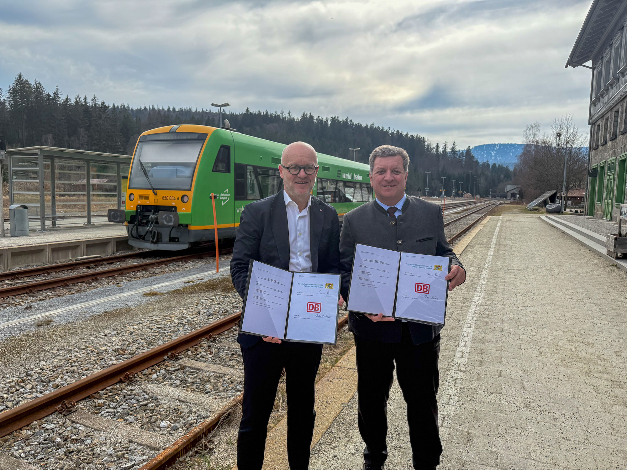 Die Vorbereitungen zur Umstellung des Netzes „Bayerwald“ auf Akku-Züge schreiten weiter voran. Der Freistaat hat heute die DB InfraGO AG mit den Planungen für den Infrastrukturausbau im DB-Netz beauftragt. Bei der Vertragsunterzeichnung betonte Bayerns Verkehrsminister Christian Bernreiter: „Wir gehen finanziell in Vorleistung, damit alle Strecken des Netzes Bayerwald auf Akku-Züge umgestellt werden können. So geht klimafreundliche Mobilität im ländlichen Raum. Mit der Vertragsunterzeichnung kommen wir unserem Ziel, bis 2040 bayernweit nur noch emissionsfreie Fahrzeuge einzusetzen, deutlich näher. “